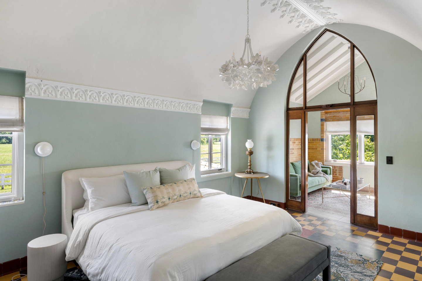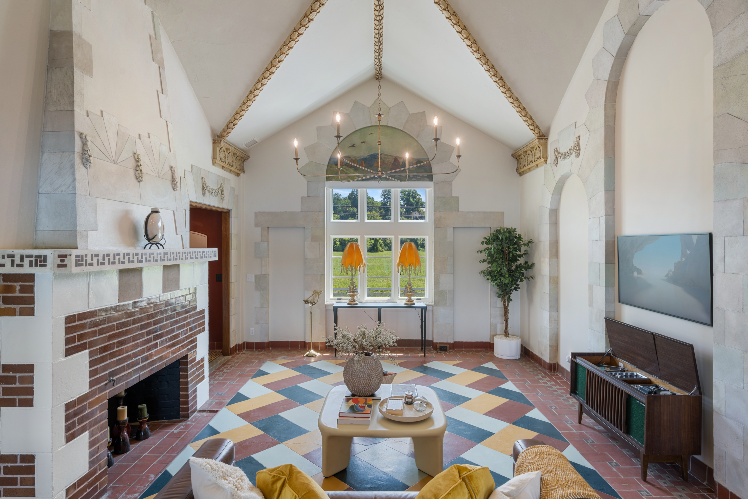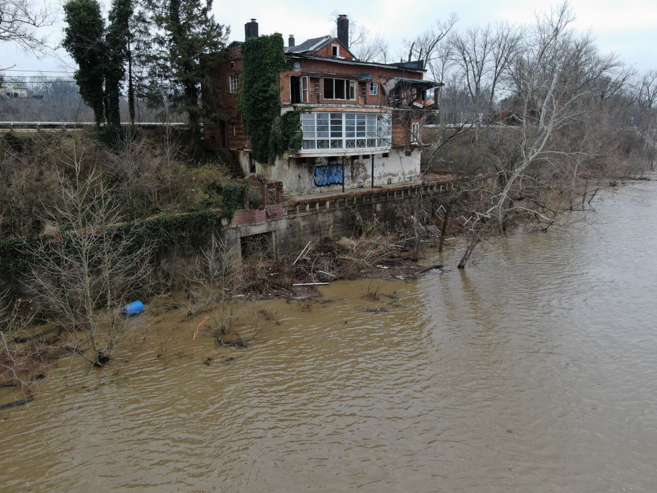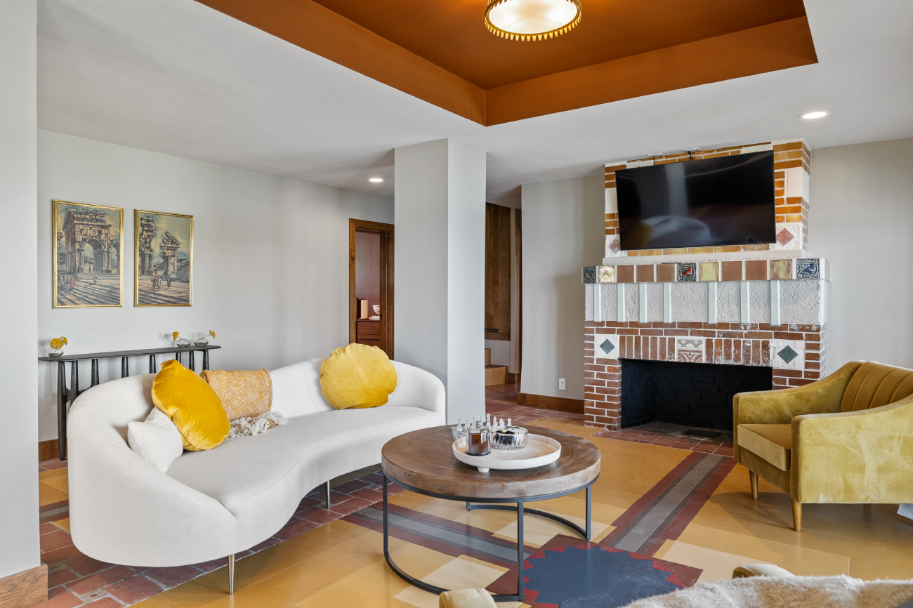 Situated on the Louisville riverfront, the Gaffney House is an eclectic 1927 residence combining Classical, Arts and Crafts, and Mayan architectural styles. The project required modernizing a property that had sat vacant for decades while addressing the complex flooding risks posed by the site’s fluctuating water levels. We collaborated with the Army Corps of Engineers to implement flood mitigation strategies that protect the structure without altering its historic character. The design restores original features such as the Mayan-motif concrete floors and stained glass while reactivating three stories of rear balconies. This rehabilitation secures the building’s legacy and reconnects the interior to panoramic views of the Ohio River and Six Mile Island.