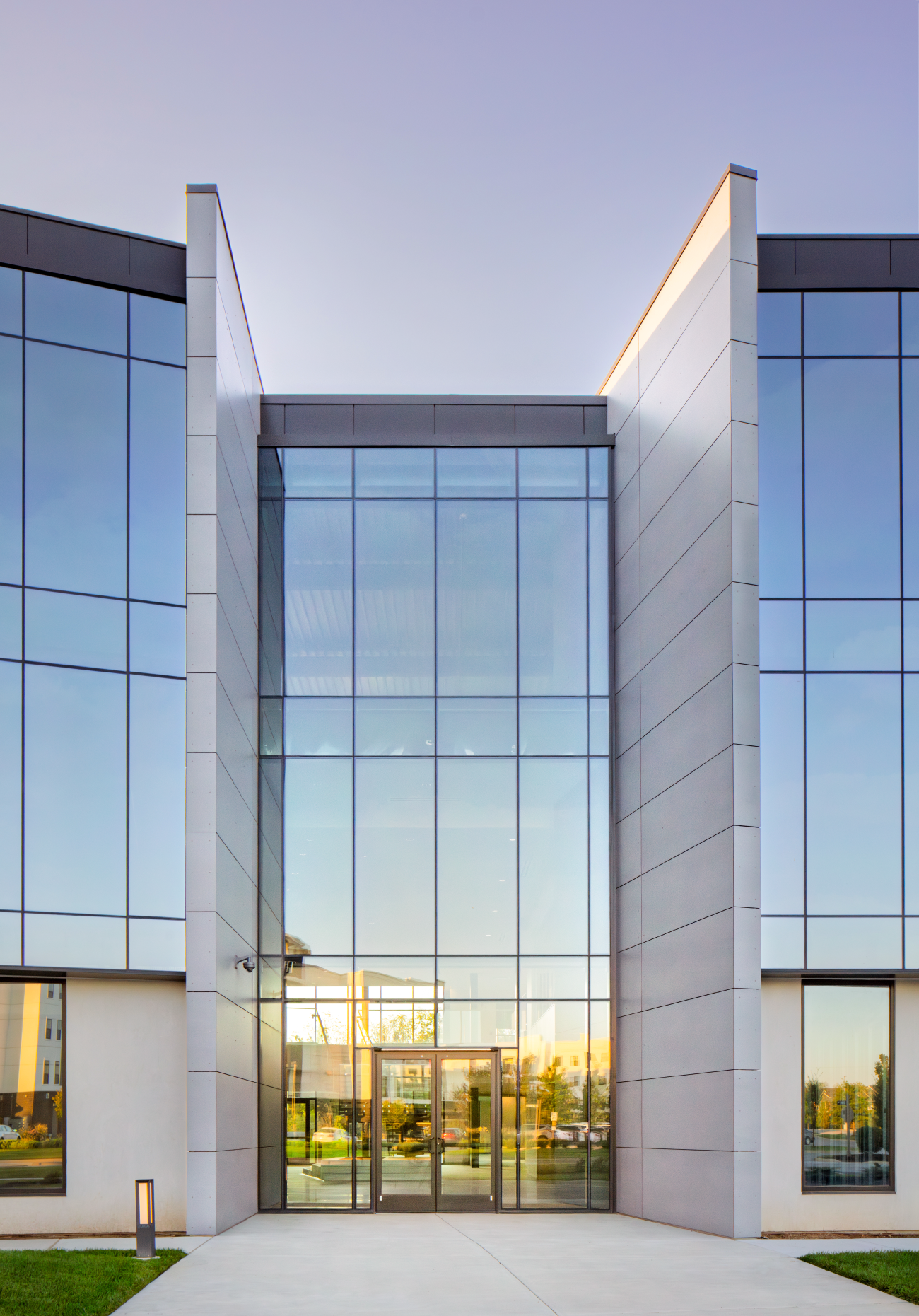 Located in the Terra Crossing Development of Louisville, Kentucky, The West is a new 73,600-square-foot Class-A office building designed to maximize visibility and natural light. The form is defined by a cantilevered upper volume where seamless curtain walls span two stories to encase the building shell. Beneath this, a classic raw material finish wraps the perimeter base while monolithic walls anchor the structure at strategic entry points. We optimized the site orientation to facilitate panoramic views and drive sunlight deep into the floor plate throughout the day. This configuration results in a distinct commercial hub offering twelve flexible tenant spaces with expansive 270-degree views at every corner.
